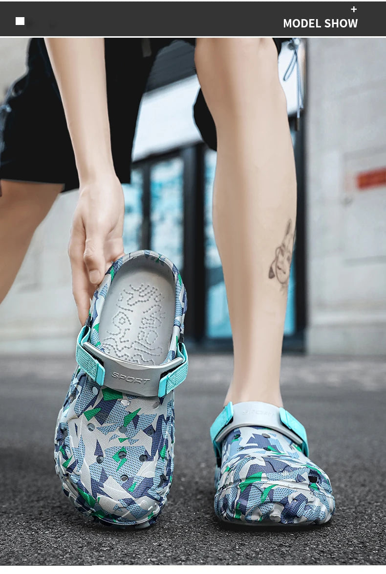 New Men's Clogs Slippers Sandal Male Garden Shoes Flat Camouflage