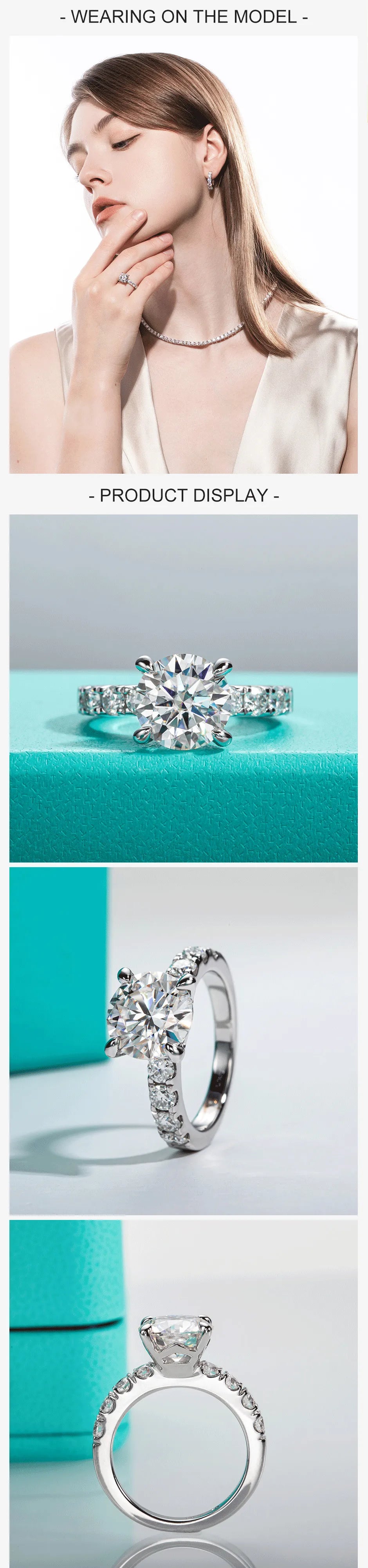 Diamond Carat Weight: 3.5ct(9.5mm) Main Stone+0.1ct(3mm)*8pcs=4.3cttw